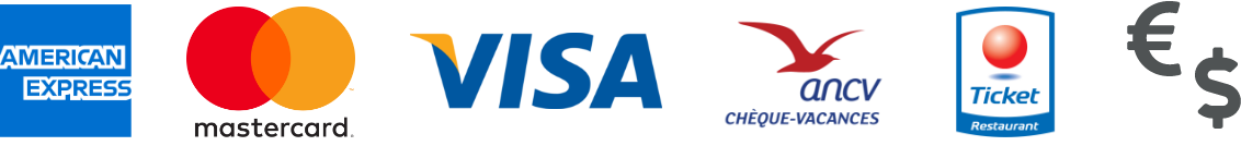 American Express – Mastercard – Visa – ANCV – Tickets restaurants – Espèces – Chèques non acceptés.